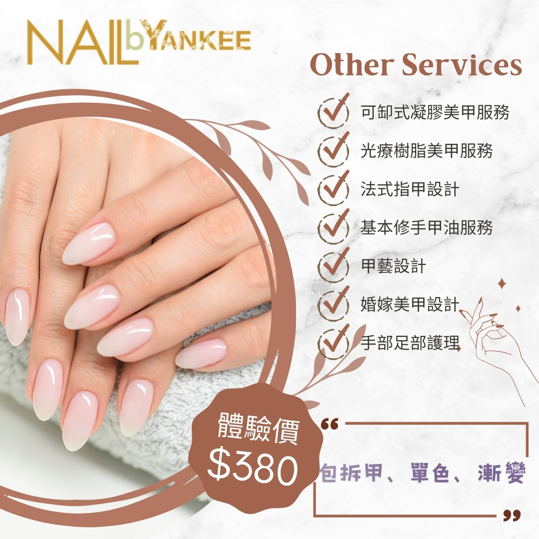 我哋帶來專業美甲服務,從基礎護甲到款式定製,都有專人一對一跟進,用細心工藝讓你嘅雙手擺脫暗沉粗糙,靚到指尖都會發光,無論拎起咖啡杯還是打字,都能自信亮出靚甲!
